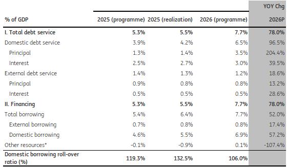 Source: CBT, Refinitiv, ING The Treasury's borrowing plan for 2026