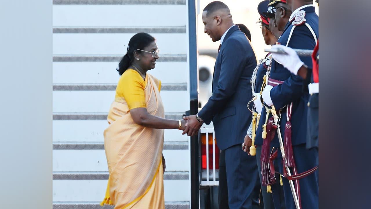In a special gesture reflecting the depth of India-Botswana friendship, President Droupadi Murmu was warmly received upon arrival at the airport by the President of Botswana, Duma Gideon Boko, and accorded a ceremonial welcome and guard of honour.