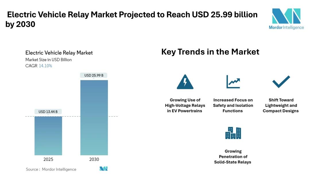 Electric Vehicle Relay Market Projected To Reach USD 25.99 Billion By 2030, Driven By High-Voltage Architecture Adoption And Safety Mordor Intelligence