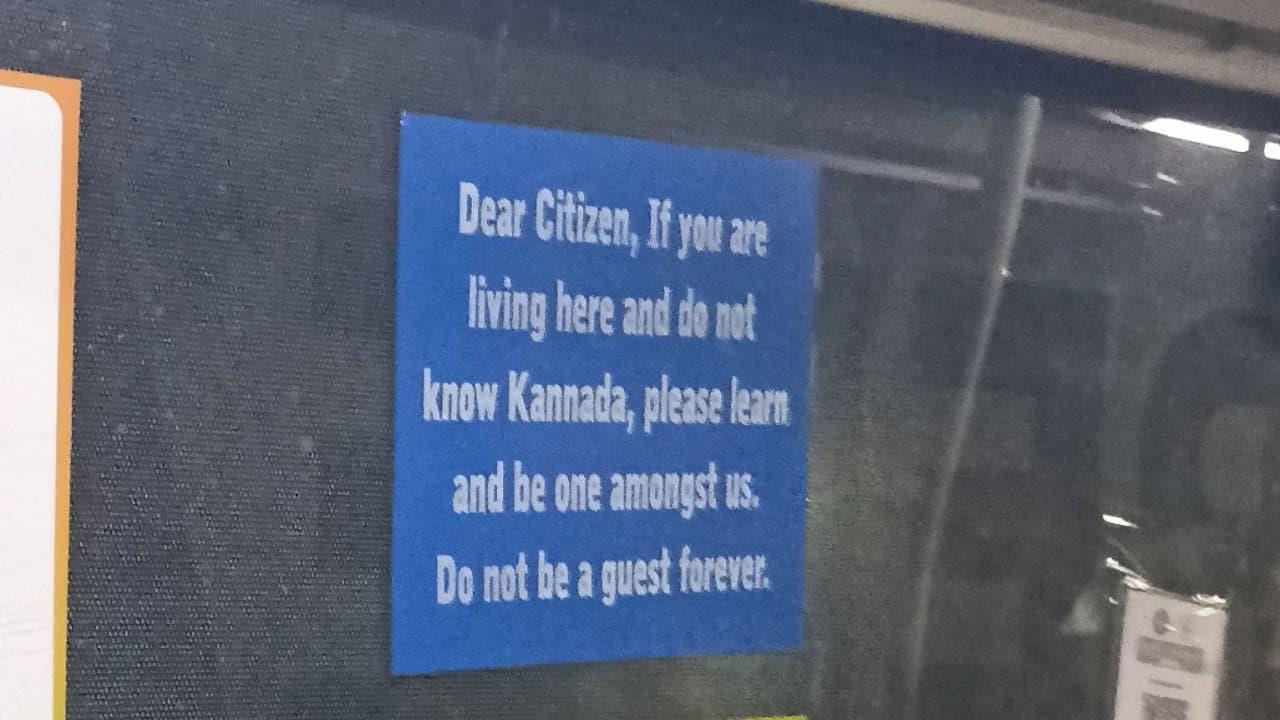 Bengaluru: A message spotted inside a Bengaluru Metropolitan Transport Corporation (BMTC) bus has sparked a lively discussion on social media about language, belonging, and inclusivity in the city. The message, written in English, read:“Dear Citizen, If you are living here and do not know Kannada, please learn and be one amongst us. Do not be a guest forever.”