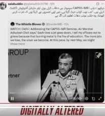 The manipulated clip attempts to sow seeds of distrust and division by putting words into the Air Marshal's mouth, making him appear to confess: "Yes, we lost our Rafale jets in May and that's exactly where our strength lies, in learning fast... the more jets we lose, the wiser we become."
