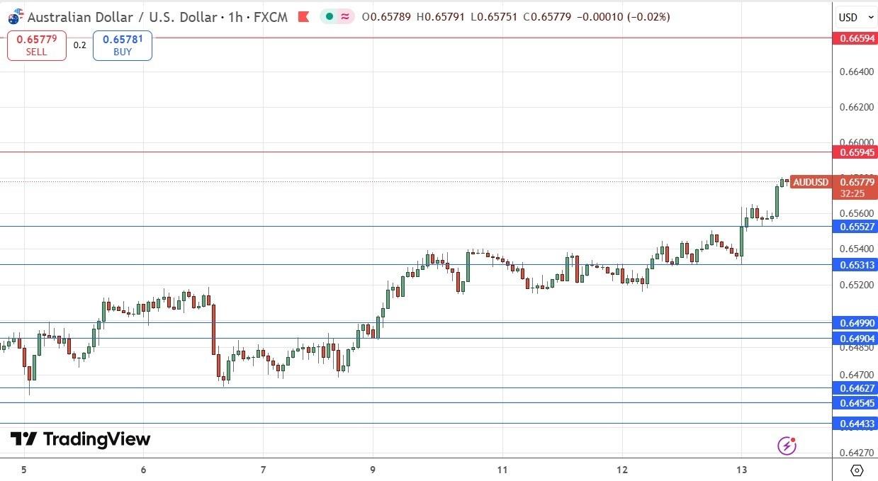 - Go long following a bullish price action reversal on the H1 time frame immediately upon the next touch of $0.6553, $0.6531, or $0.6499. Place the stop loss 1 pip below the local swing low. Move the stop loss to break even once the trade is 20 pips in profit. Remove 50% of the position as profit when the price reaches 20 pips in profit and leave the remainder of the position to ride.