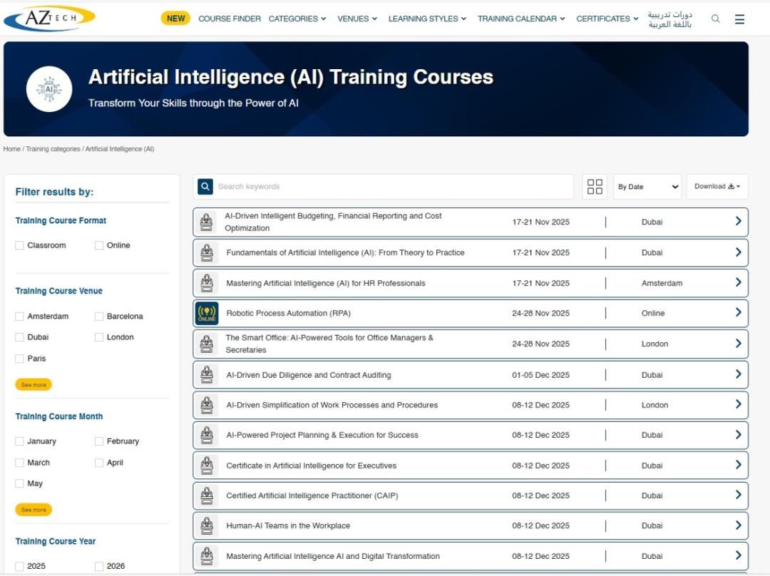 Dubai, UAE - AZTECH Training & Consultancy is proud to announce the official launch of its comprehensive new series ofArtificial Intelligence (AI) Training Courses, a milestone designed to support the growing demand for digital skills and future-focused professional development across government, industry, and the private sector.
