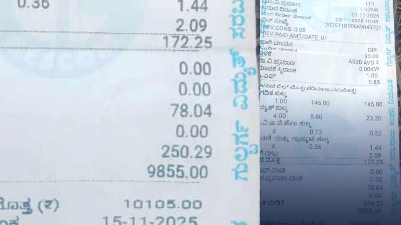Raichur: Bhagyamma Basanagowda, a resident of Mandalagera village in Raichur taluk, has been receiving electricity under the 'Saubhagya Yojana', a government scheme aimed at providing affordable electricity to rural households. She used to pay a modest monthly bill of ₹250, which suited her small income. However, she was recently shocked to receive an astronomical bill of ₹9,855, raising concerns about billing practices and meter readings in rural areas of Karnataka.