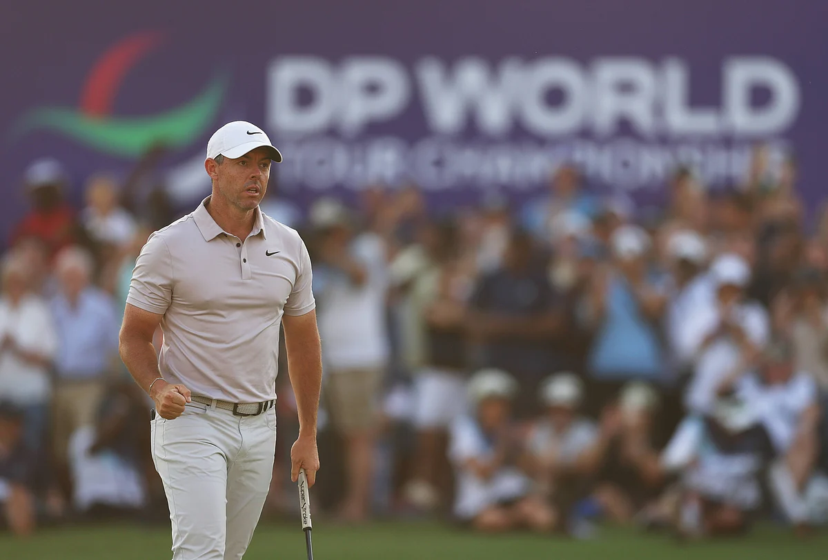 Rory McIlroy took a major step towards his seventh Race to Dubai crown when he moved into a share of the lead following the third round of the DP World Tour Championship at Jumeirah Golf Estates on Saturday (November 15).