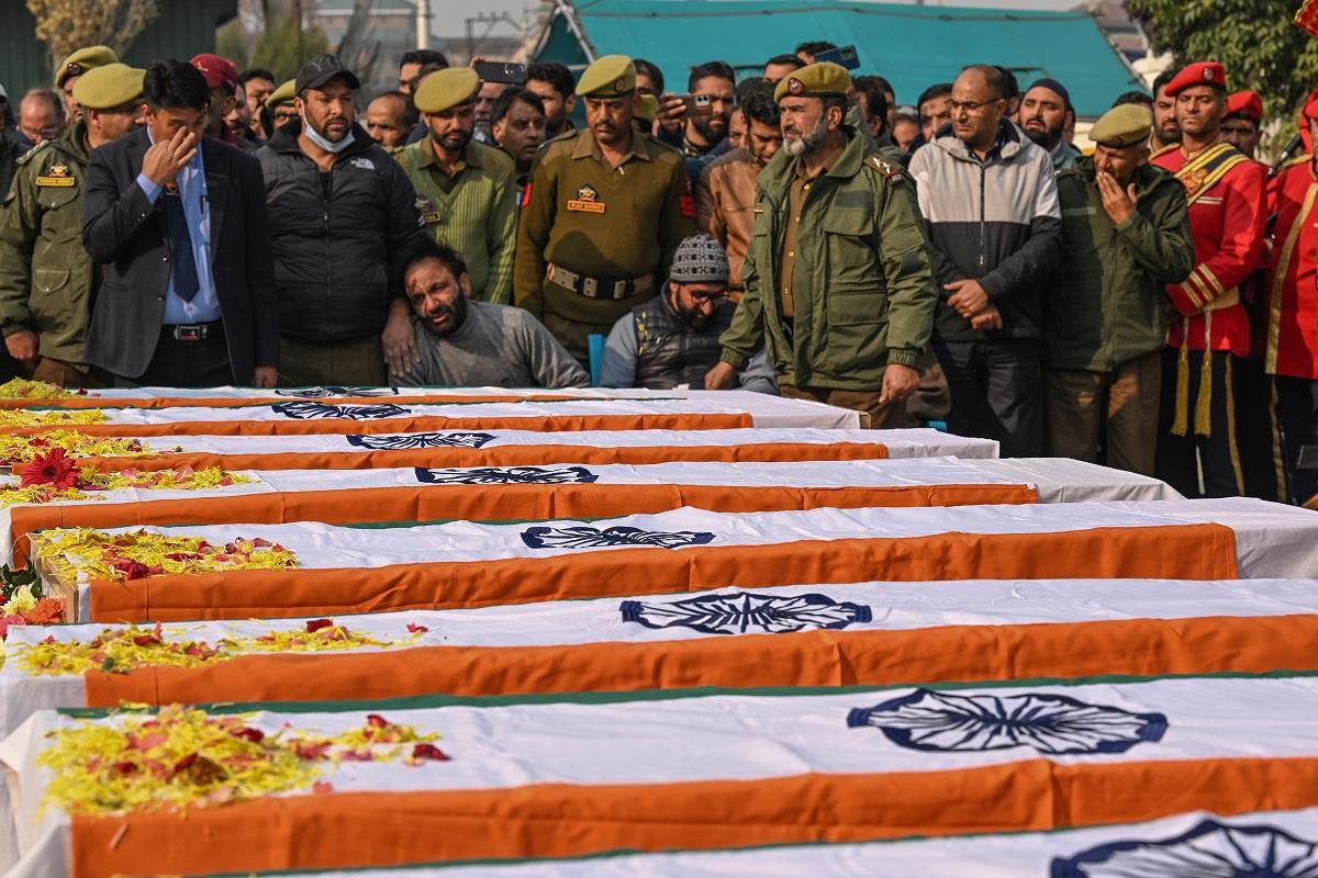As the vehicle carrying his tricolour-draped coffin reached the village, cries broke out. Men tried to hold back tears, while women clutched one another for support. Children stood silently beside their elders, watching as the body was brought home for the final rites.