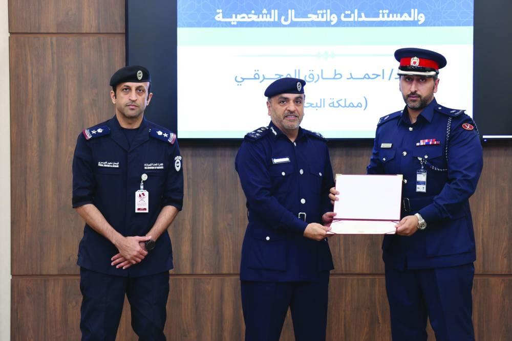 At the closing ceremony, Director of Administrative Affairs at the General Directorate of Passports, Brigadier Khalid Jassim al-Zaini, and Assistant Director of the Administrative Affairs Department, Colonel Faisal Duhaim al-Dosari, handed certificates of completion to the graduates in Detecting Document Forgery and Identity Fraud verifying