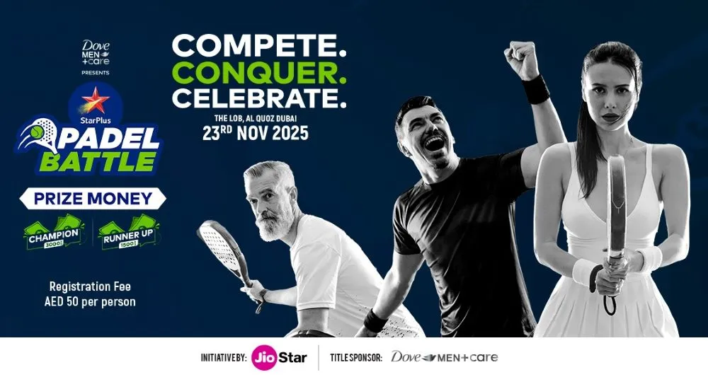 Star Plus is bringing the heat to Al Quoz this November with Dove Men+Care presents Star Plus Padel Battle, a one-day tournament on Sunday, 23rd November 2025 at The Lob, Dubai. It's your chance to grab a racket, rally hard, and compete for some amazing prizes. For just AED 50 per person, players can sign up and battle it out for the ultimate win. The champions will walk away with AED 3,000, while the runners-up will still score big with AED 1,500. Whether you're in it for the thrill of the game, the glory of the win, or simply the fun of playing alongside fellow padel fans, this tournament has something for everyone. Please find the link to register: (AED 50 per person. November 23. Al Quoz.)