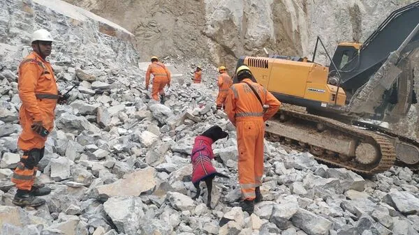According to the caller, multiple workers became trapped beneath the rubble after part of a stone quarry run by Krishna Mining Works gave way.