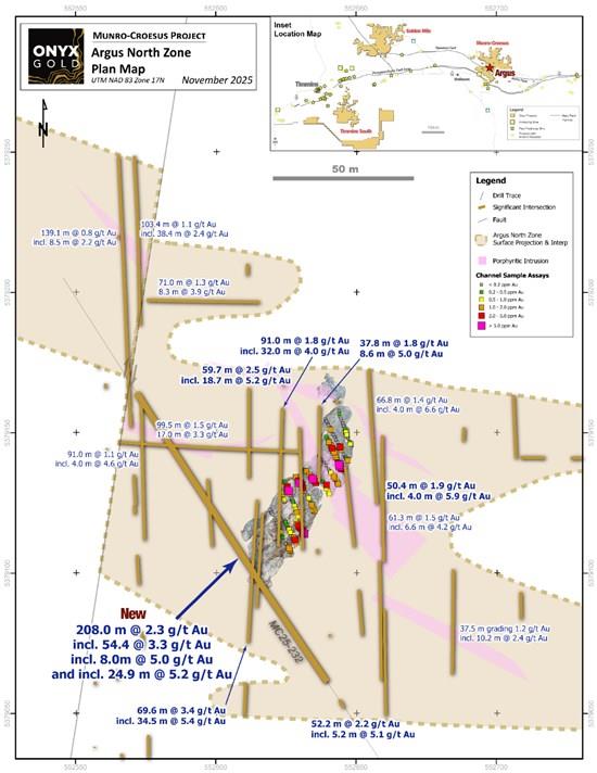 Onyx Gold Expands Argus North Discovery Footprint - 208 M Of 2.3 G/T Au, Including 25 M Of 5.2 G/T Au