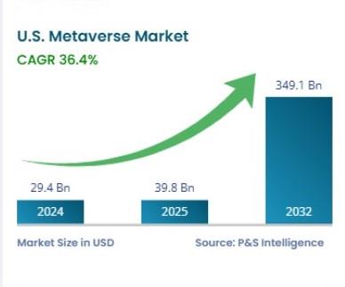 (MENAFN- P&S Intelligence) According to the latest market research study published by P&S Intelligence, the U.S. metaverse market size reached USD 29.4 billion in 2024 and is projected to expand at a strong 36.4% CAGR from 2025 to 2032, ultimately reaching USD 349.1 billion by 2032.