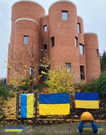 Unknown Individuals Hang Ukrainian Flags On Fence Of Chamber Of Deputies Speaker Okamura House In Czech Republic