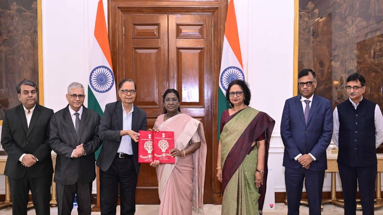The 16th Finance Commission submitted its report to President Droupadi Murmu on Monday. The report was submitted by 16th Finance Commission Chairman Dr Arvind Panagariya, along with members of the panel - Annie George Mathew, Dr. Manoj Panda, T. Rabi Sankar, and Dr Soumyakanti Ghosh. Secretary to the 16th Finance Commission Ritvik Pandey also accompanied the Chairman.