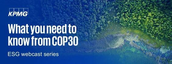 Join KPMG leaders from various regions who were on the ground at COP30 for an overview of the some of the most important outcomes from this year's conference, touching on headline developments and the overarching themes that shaped COP30. This session aims to translate big-picture insights into practical priorities for corporate strategy, risk management, and stakeholder engagement.