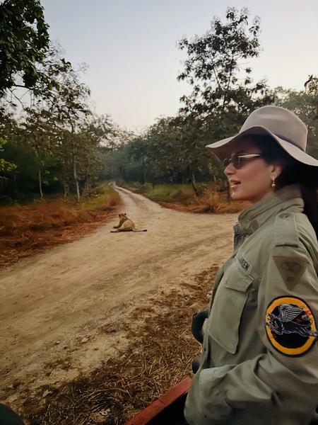 "Today in Gir national park and with my little friend Prithavi, who is my favourite travel buddy now. We are very thrilled to get sightings of various species aur vaise bhi Gujrat Lion toh world famous hai (Slightly smiling face emoji)," she added.