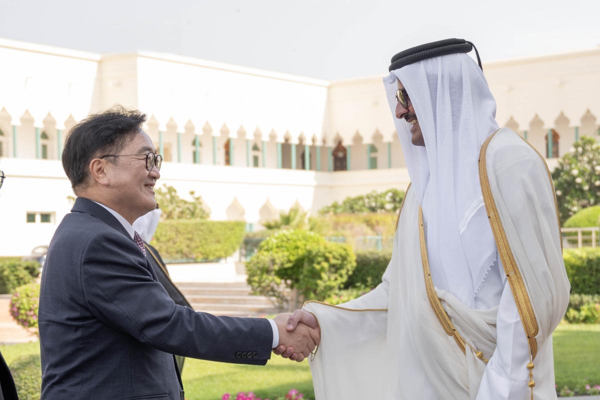 Doha, Qatar: The Amir His Highness Sheikh Tamim bin Hamad Al-Thani received on Tuesday, November 18, 2025, at the Majlis of Sheikh Abdullah bin Jassim in the Amiri Diwan, HE Woo Won-shik, Speaker of the National Assembly of the Republic of Korea, and his accompanying delegation on the occasion of his visit to the country.
