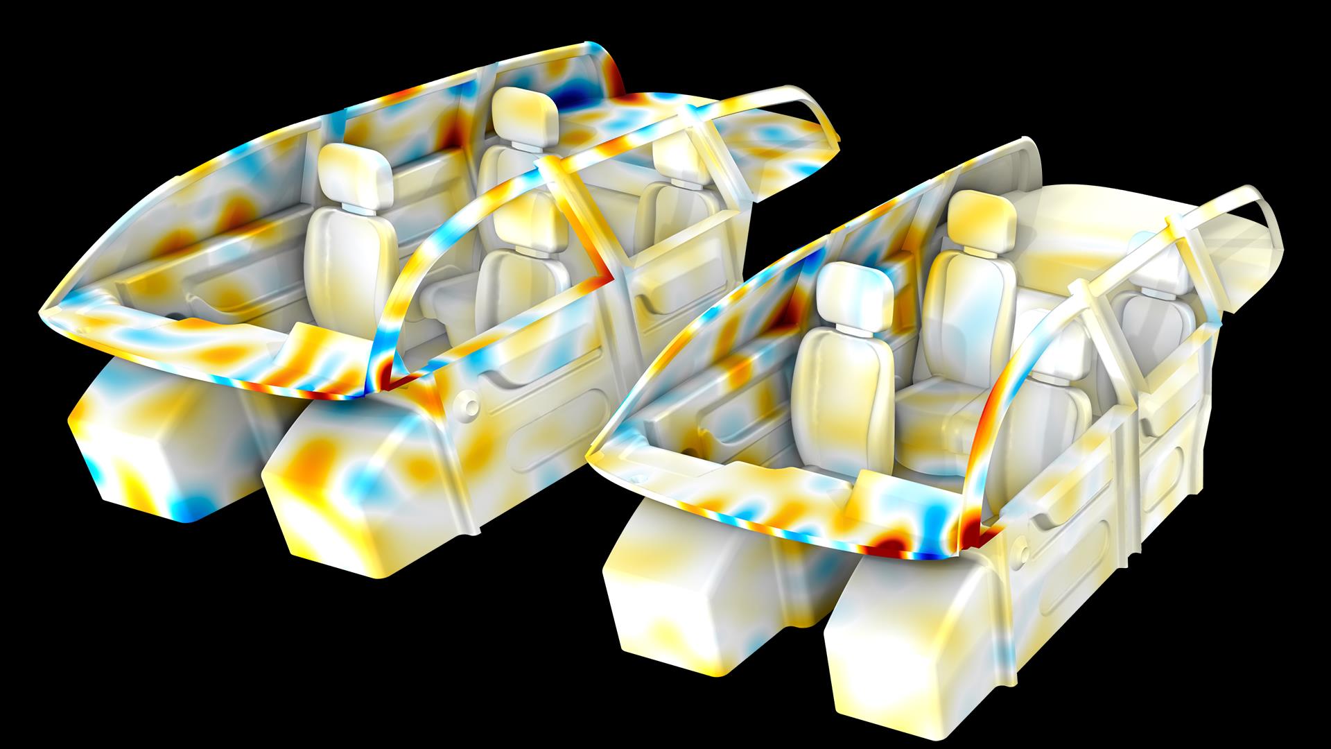 In-cabin acoustic simulations, such as the one shown here of a car cabin, benefit from NVIDIA® GPU acceleration in version 6.4, which offers faster and more scalable analyses.