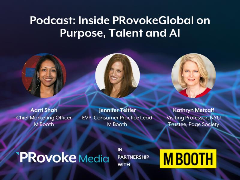 Fresh off PRovoke Media's Global Summit in Chicago, communications leaders Kathryn Metcalf, whose résumé spans CVS Health and Bristol-Myers Squibb, and Jennifer Teitler, executive VP and consumer practice lead at M Booth, joined guest host Aarti Shah, M Booth's CMO, for a fast-moving debrief on the themes shaping the industry. Purpose, talent and, unsurprisingly, a whole lot of AI dominated the conversation.