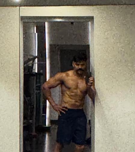 Taking to his Instagram page to post another picture of his six pack for the film, the actor wrote, "Same mirror.. same Vettuvam Climax.. Different Day. Ending climax... everything blurry. #Vettuavam @ranjithpa."