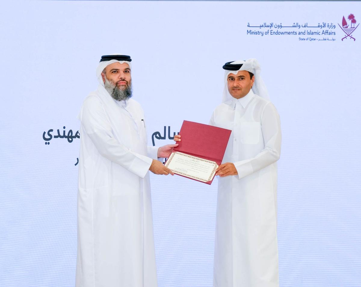 The recognition was presented by Undersecretary of the Ministry of Awqaf and Islamic Affairs H E Dr. Sheikh Khalid bin Mohammed bin Ghanem Al Thani during a ceremony organised by the Ministry's Engineering Affairs Department.