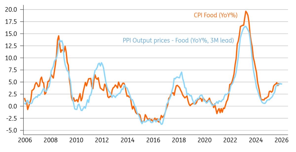 UK headline inflation is undoubtedly past the peak, following a smaller household energy price hike than a year earlier. But the dip from 3.8% to 3.6% was shallower than expected, on account of a sharper pick-up in food inflation than we and others had pencilled in. Last month's fall in food from 5.1% to 4.5% in annual terms looked a bit weird, and October's rebound to 4.9% confirms that was indeed the case.