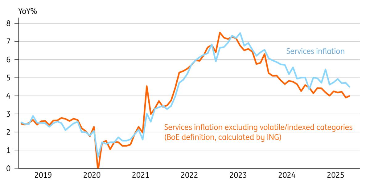 Elsewhere, services inflation notched lower from 4.7% to 4.5%, but this is principally down to air fares. Once you strip out the volatile and indexed elements, our calculation of the BoE's preferred“core services” metric actually notched a tad higher in October. The hawks will point to restaurant/café prices, often seen as a bellwether for“persistence” among services categories, where prices increased sharply on the month, potentially linked to the broader food price pressure.