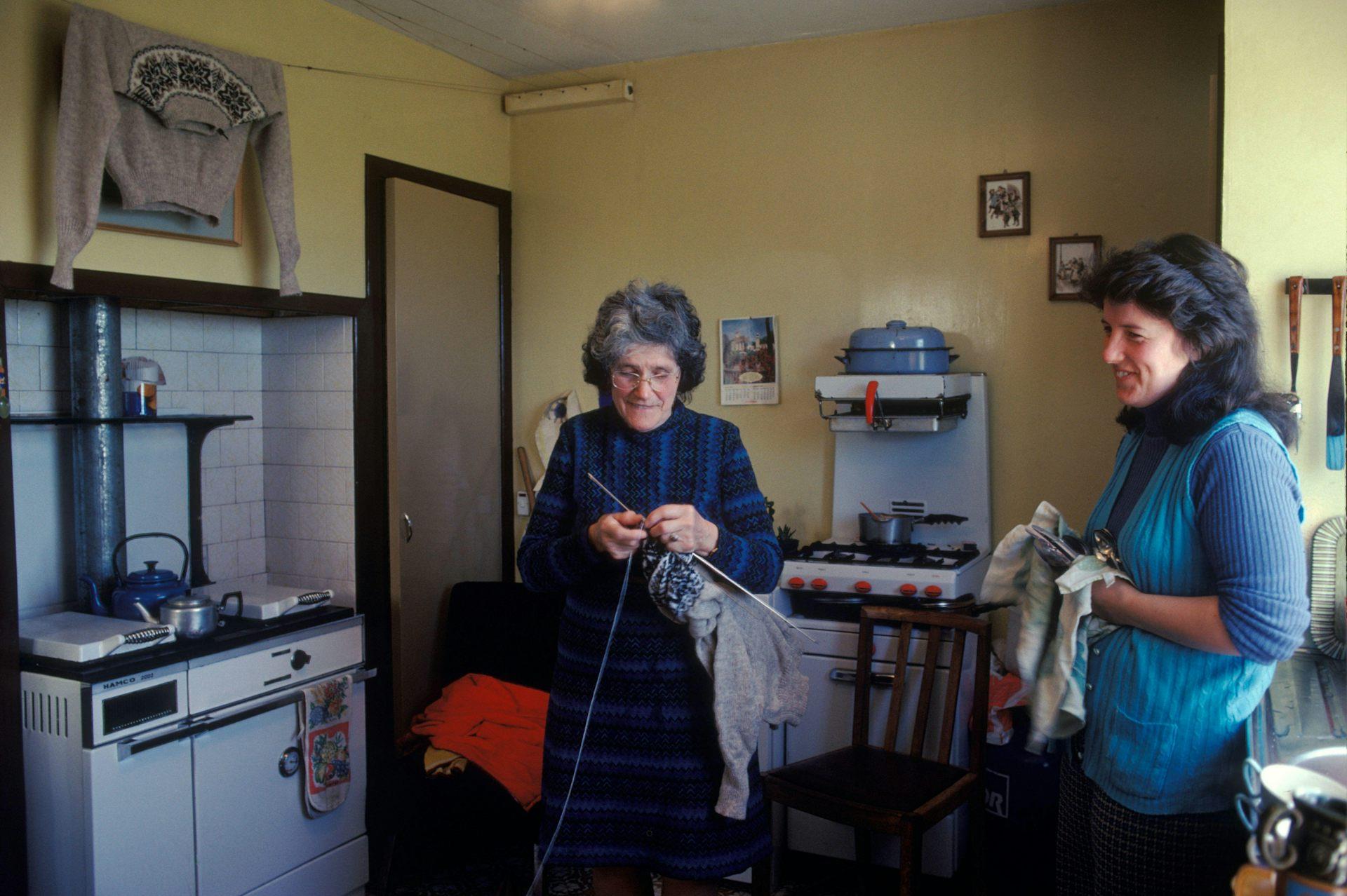 A woman knitting a Fair Isle jumper in the Shetlands, circa 1979. Homer Sykes / Alamy