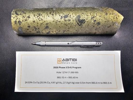 Abitibi Metals Intersects 17.91% Cueq (13.48% Cu, 5.15G/T Au) Over 6.3M Within 6.93% Cueq Over 19.5M In Western Zone Expansion