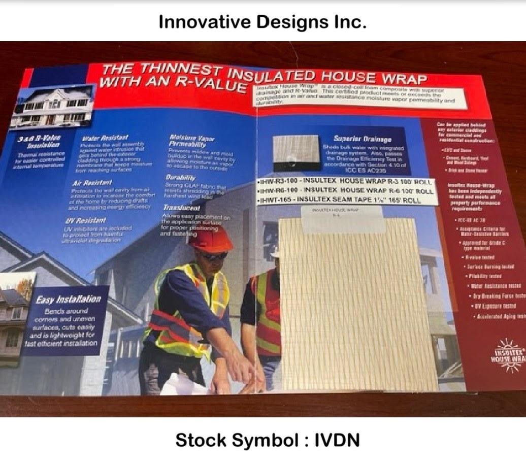Innovative Designs, Inc. (OTCQB: IVDN ), manufactures and markets its unique, patented Insultex® material, a quantum leap forward in insulation based on proprietary evacuated (vacuum) cells. IVDN products deliver optimum warmth and comfort via insulating, windproof and waterproof protection with no animal materials. IVDN holds issued US patents on both the evacuated cell material and its manufacturing process.