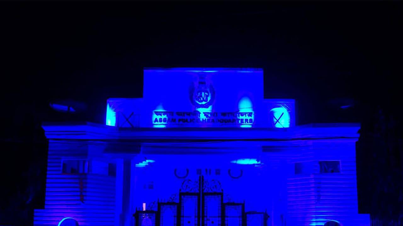 Assam DGP Harmeet Singh on Thursday ceremonially illuminated the Assam Police Headquarters in Blue light, in the presence of senior officers and staff of the Assam Police Headquarters.
