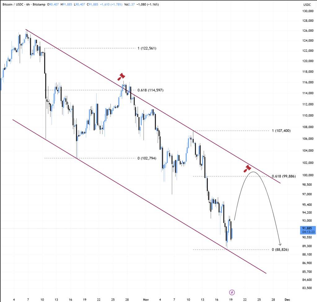Analyst BitBull reinforces this view, citing Bitcoin's deeply oversold status and technical structure within a descending channel. He notes the current price near the lower boundary of this downtrend signals a possible local bottom, with a potential rally toward $98,000 to $100,000.