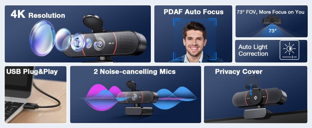 EMEET C960-4K Webcam - Ultra-Clear 4K Clarity at an Unbeatable Price