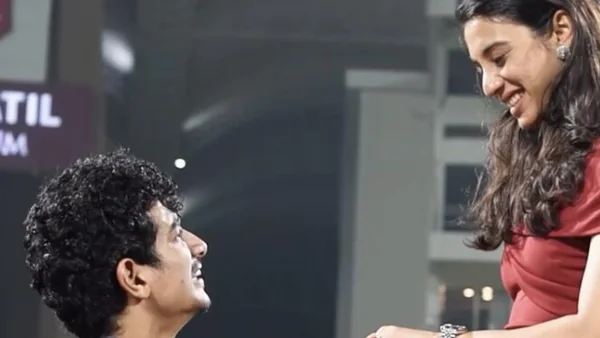 Muchhal shared a heartwarming video of his proposal to Mandhana. He led a blindfolded Mandhana onto the DY Patil Stadium in Navi Mumbai, where he presented her with a bouquet of red roses before getting down on one knee to propose.