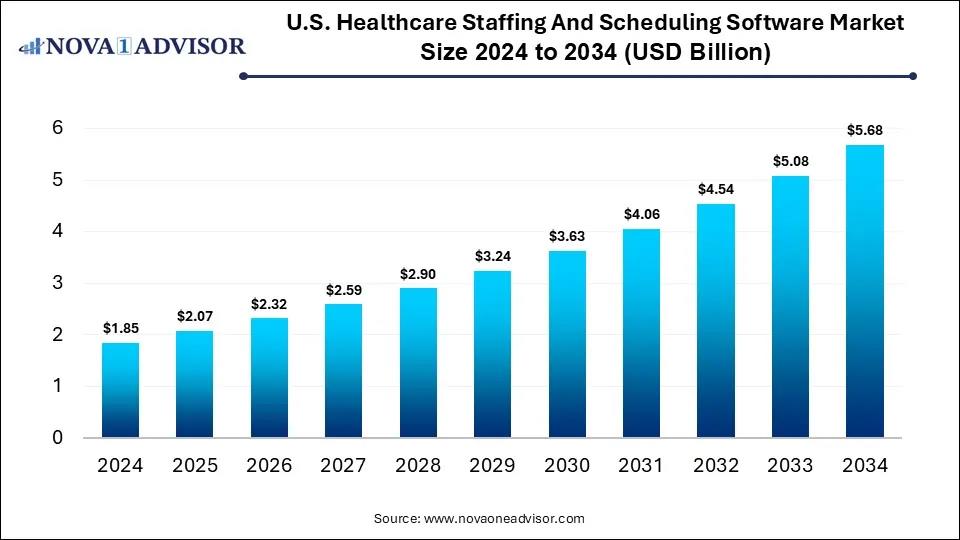 U.S. Healthcare Staffing and Scheduling Software Market Size 2024 to 2034 (USD Billion)