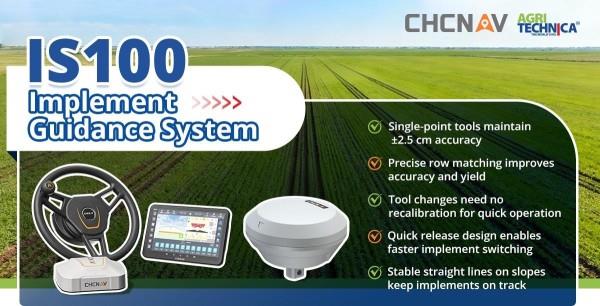 IS100 (Implement Guidance): Uses the actual implement position as reference to eliminate drift, significantly improving row spacing and straightness - ideal for slopes, hillsides, and trailed implements.