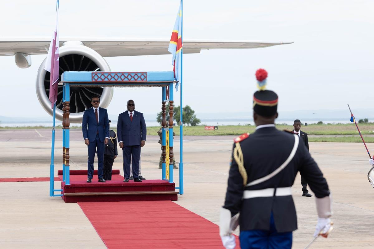 Also present to welcome HH the Amir were President of the Senate HE Jean-Michel Sama Lukonde Kyenge, President of the National Assembly HE Aime Boji Sangara, Minister of Foreign Affairs, International Cooperation and Francophonie of the Democratic Republic of Congo HE Therese Kayikwamba Wagner.