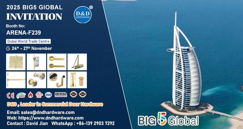 Jiangmen, Guangdong, China - D&D Hardware, a certified architectural door hardware manufacturer specializing in fire-rated and commercial door solutions, will exhibit at Big 5 Global Dubai 2025 from November 24–27, 2025, at the Dubai World Trade Centre, presenting its UL and CE certified fire door hardware ranges at Booth ARENA – F239.