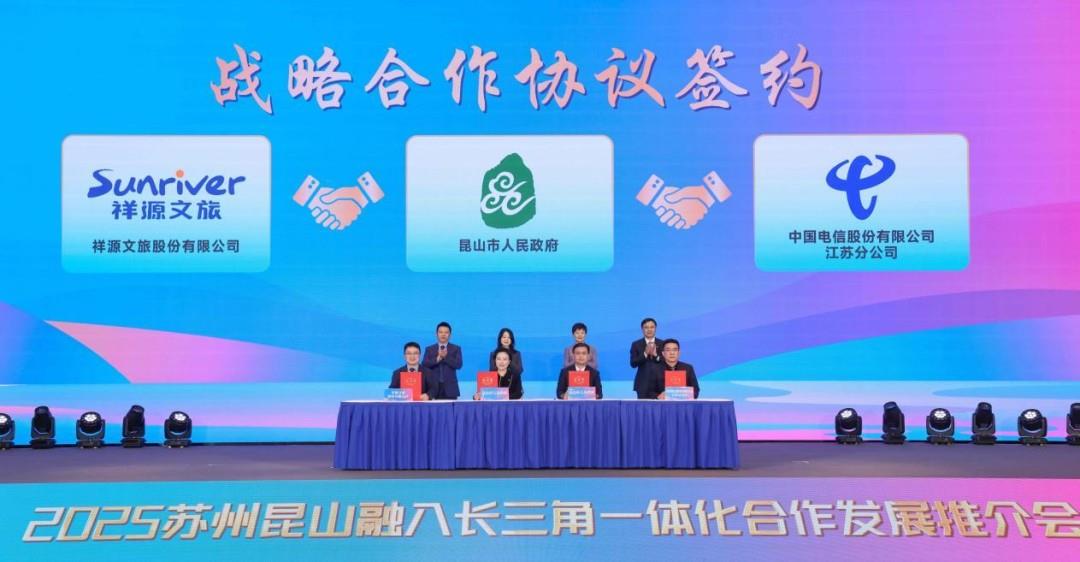 On the same day, Kunshan signed strategic cooperation agreements with Shanghai International Port (Group) Co., Ltd., the Administrative Committee of Suzhou Port, the Jiangsu branch of China Telecom, Zhejiang Sunriver Culture Tourism Co., Ltd., Bank of Shanghai, Shanghai Pudong Development Bank, and Shanghai Rural Commercial Bank. A signing ceremony was held for 28 Shanghai–Kunshan cooperation projects in four categories-services for people's well‐being, cooperation among leading organizations and financial institutions, and modern cultural tourism.