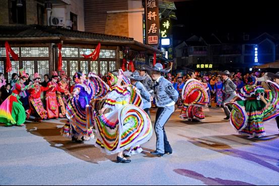 That evening, the“Beautiful Aba · Happy Qiang New Year” Gala brought the atmosphere to a climax. Local performance groups from Wenchuan and Li County shared the stage with international ensembles including the New Zealand Māori Arts Troupe, Inner Mongolia Ulan Muqir, and other overseas ICH teams. Programs such as the thematic dance drama“Magnificent Aba ICH”, Qiang performances“Cloud Robe” and“On the Red Beam”, and the foreign showcase“Wonderful World” illuminated the night with a vibrant fusion of cultures. After the gala, the immersive night tour continued through the streets of Yingxiu Town, where Yingge Dance, Baiye Dragon, fire-breathing, and face-changing flash performances integrated intangible heritage into everyday life.
