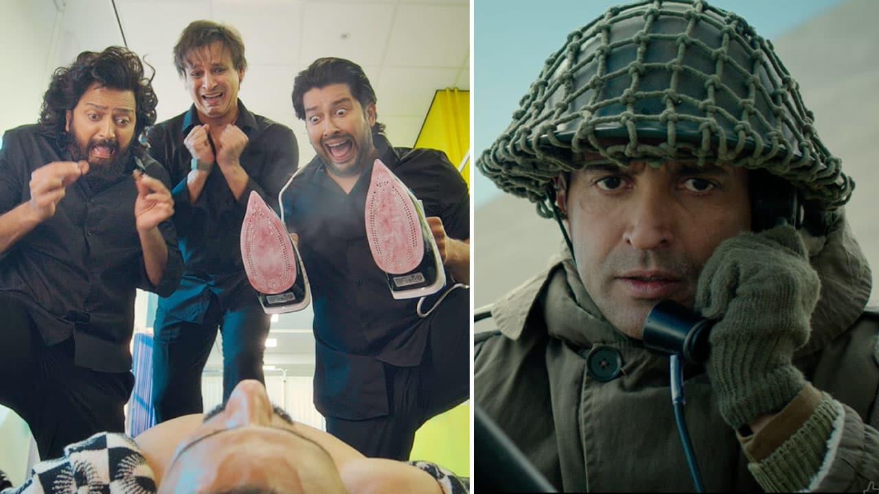 Masti 4 stars Riteish Deshmukh, Vivek Oberoi, and Aftab Shivdasani. 120 Bahadur features Farhan Akhtar in the lead, alongside Raashii Khanna, Ankit Siwach, and others.