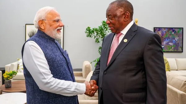 On arrival at the summit venue on Saturday, President Ramaphosa greeted PM Modi warmly with a 'namaste', symbolising the close ties between the two nations.