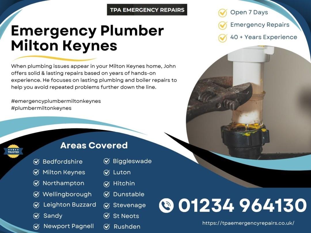 TPA Emergency Repairs offers a wide range of boiler & plumbing repair services to customers. These include; boiler repairs, leaking boiler repairs, gas leak repairs, leaking toilet pipe repairs, broken toilet flush repairs, toilet cistern repairs, emergency toilet repairs, shower repairs, leaking shower repairs, burst pipe repairs, frozen pipe repairs, leaking pipe repairs, broken pipe repairs, emergency pipe leak repairs, radiator repairs, leaking radiator valve repairs, boiler repairs, leaking boiler repairs, leaking pipes under the sink and much more. So those who need an emergency boiler repair in Milton Keynes or an emergency boiler repair in Northampton or Bedfordshire, can contact them today.