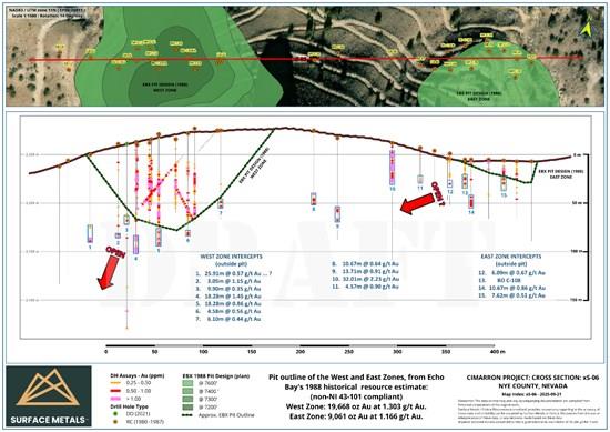 The cross section below (Figure 1) illustrates the continuity of mineralization between the West and East Zones and highlights the open gold mineralization extending below the majority of the zones below the open pit resource estimate outline.