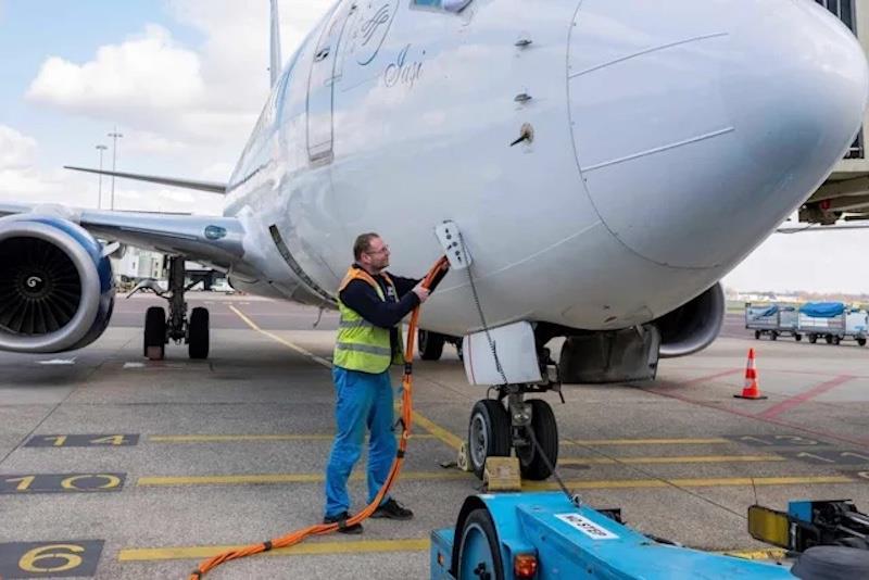 Schiphol notes that delays in connecting aircraft to ground power can force aircraft to run auxiliary power units longer than necessary, increasing fuel burn and emissions.