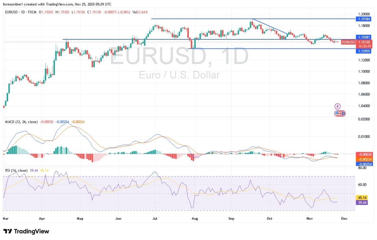 As anticipated, the EUR/USD trading will remain in narrow ranges until the market reacts to the US economic releases that were held back due to the longest government shutdown in US history. Across trusted trading company platforms, the Euro/Dollar price has remained within the range of 1.1500 and 1.1550, awaiting any new developments.