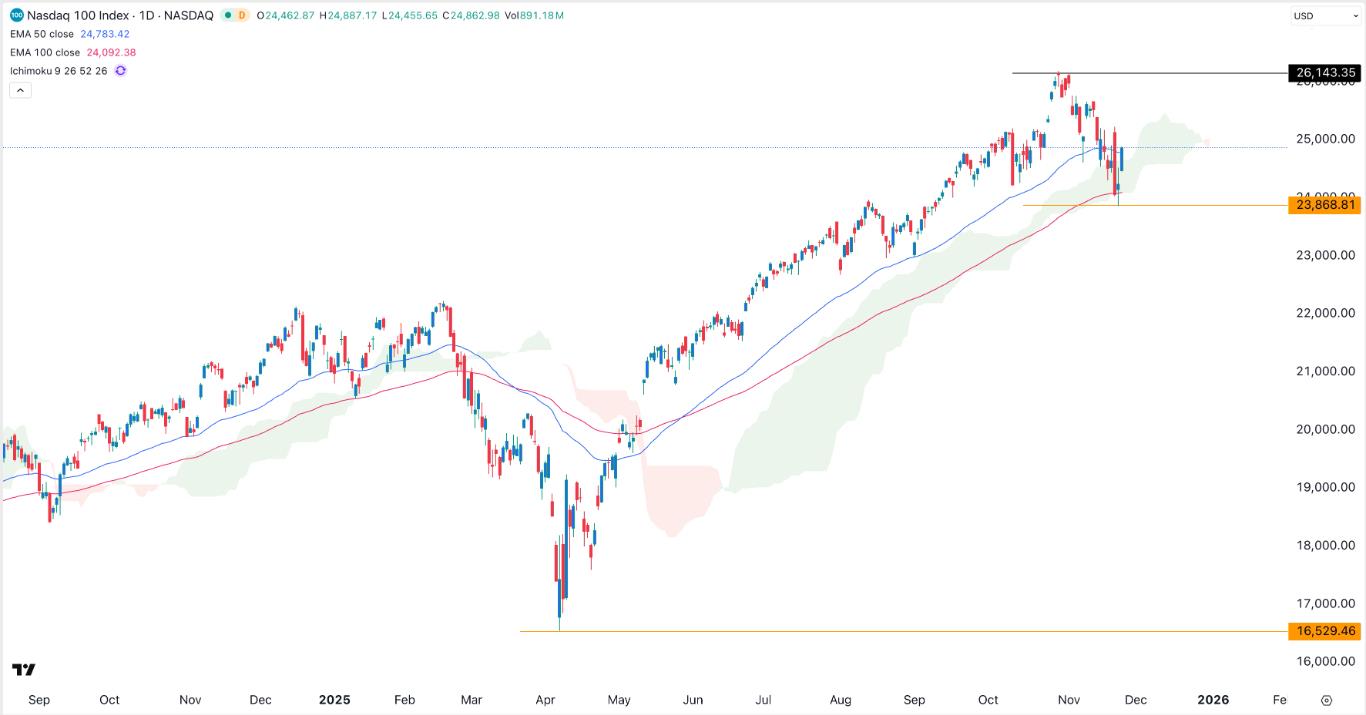 Nasdaq 100 Analysis 25/11: Holds Above Ichimoku (Chart)
