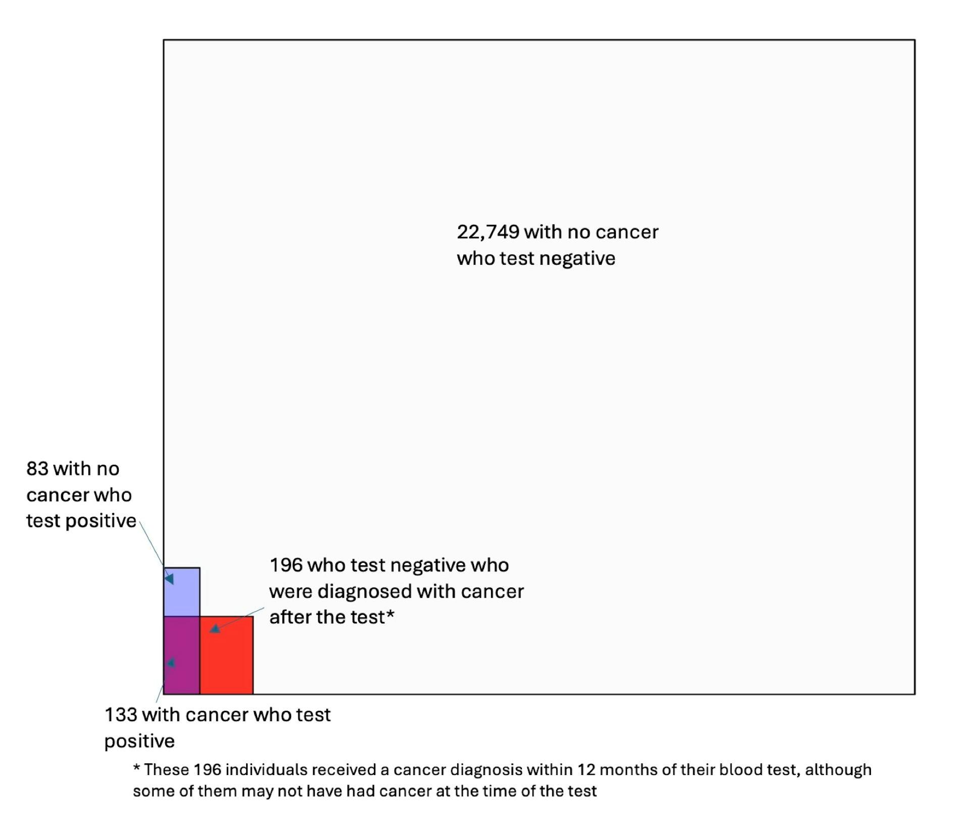 What has been less widely discussed is sensitivity, the measure of how many true cancer cases the test actually detects. On this measure, the result was 40.4%, meaning the test missed around three in every five cancers that appeared over the following year.