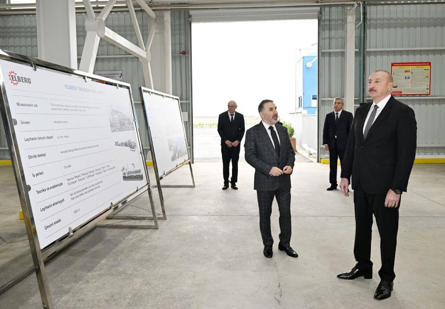 President Ilham Aliyev was first informed about the Matanat-A company, which was founded in 2000. Operating in the construction materials sector for 25 years, the company includes the Matanat-A dry construction mixtures plant, AGHDAG gypsum board and gypsum-based products plant, AZERLIME lime plant, equipment and machinery production facilities, and the ELBERG machine-building plant. The company's enterprises employ nearly 1,000 people in total.