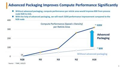 Without advanced packaging, moving from 28nm to A16 would deliver roughly an 80-fold increase in compute density per reticle area, Huang said. With it, the gain rises to around 320 times.