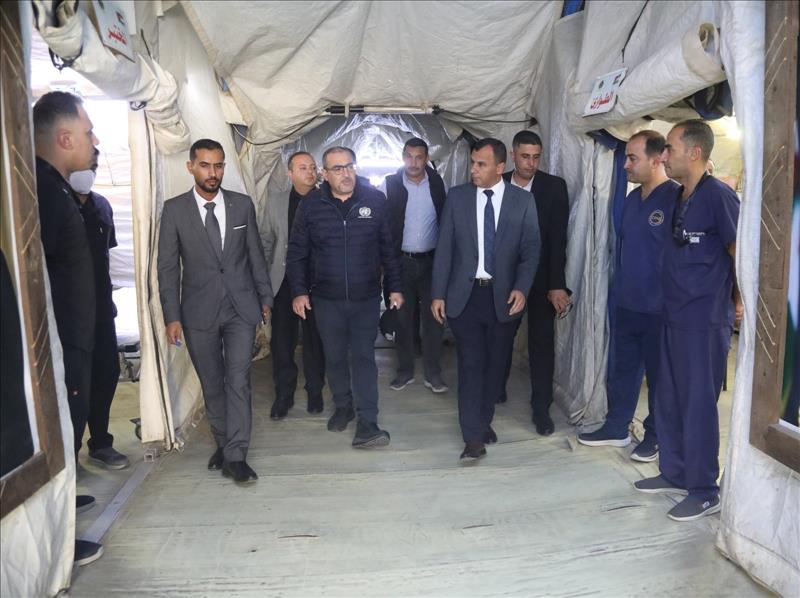 During the visit, the delegation was briefed on the hospital's operational mechanisms and its approach to handling a wide range of medical cases. They also reviewed the available medical specialties and the scale of daily humanitarian and therapeutic services provided to meet the growing needs of Gaza's residents.